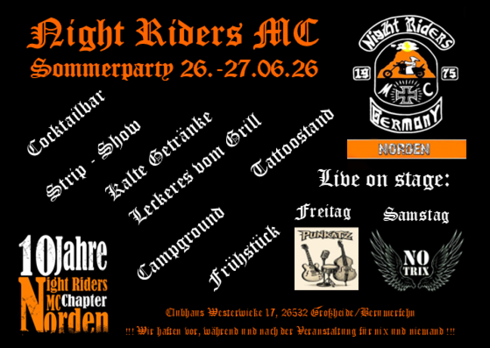 Home Der Night Riders MC ist und bleibt ein eigenständiger und neutraler Motorradclub und supportet niemanden.